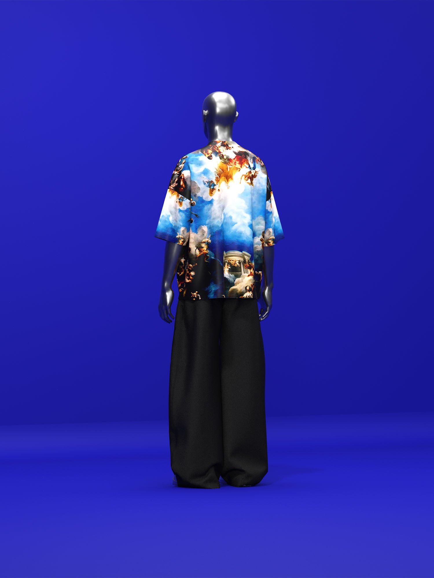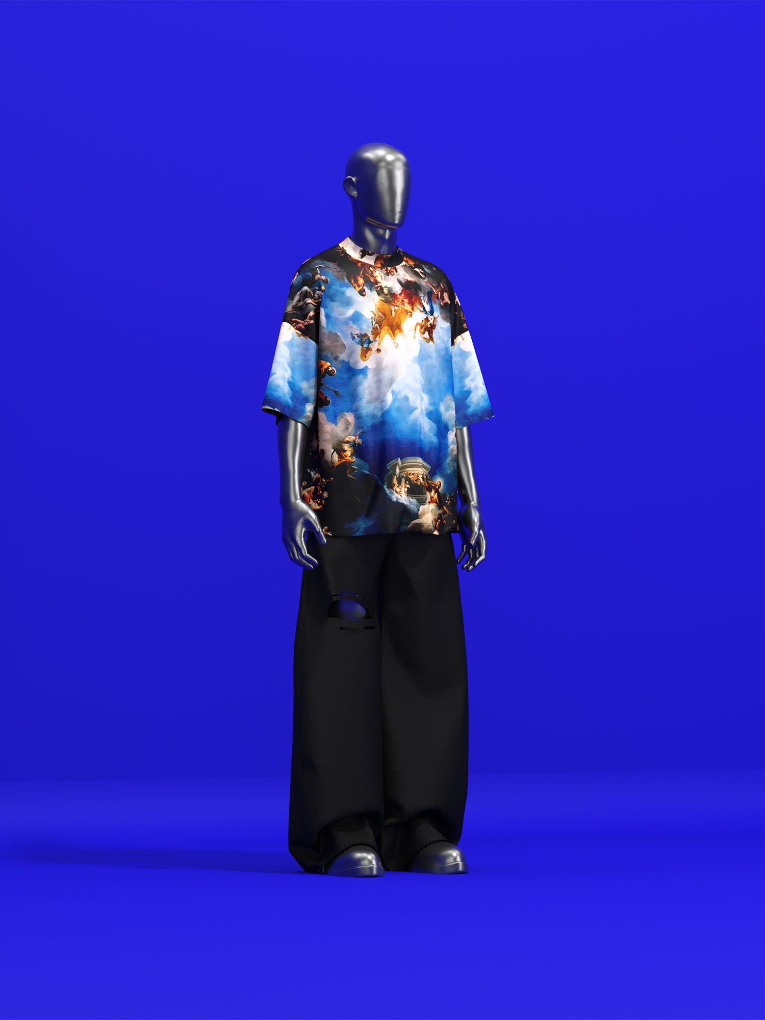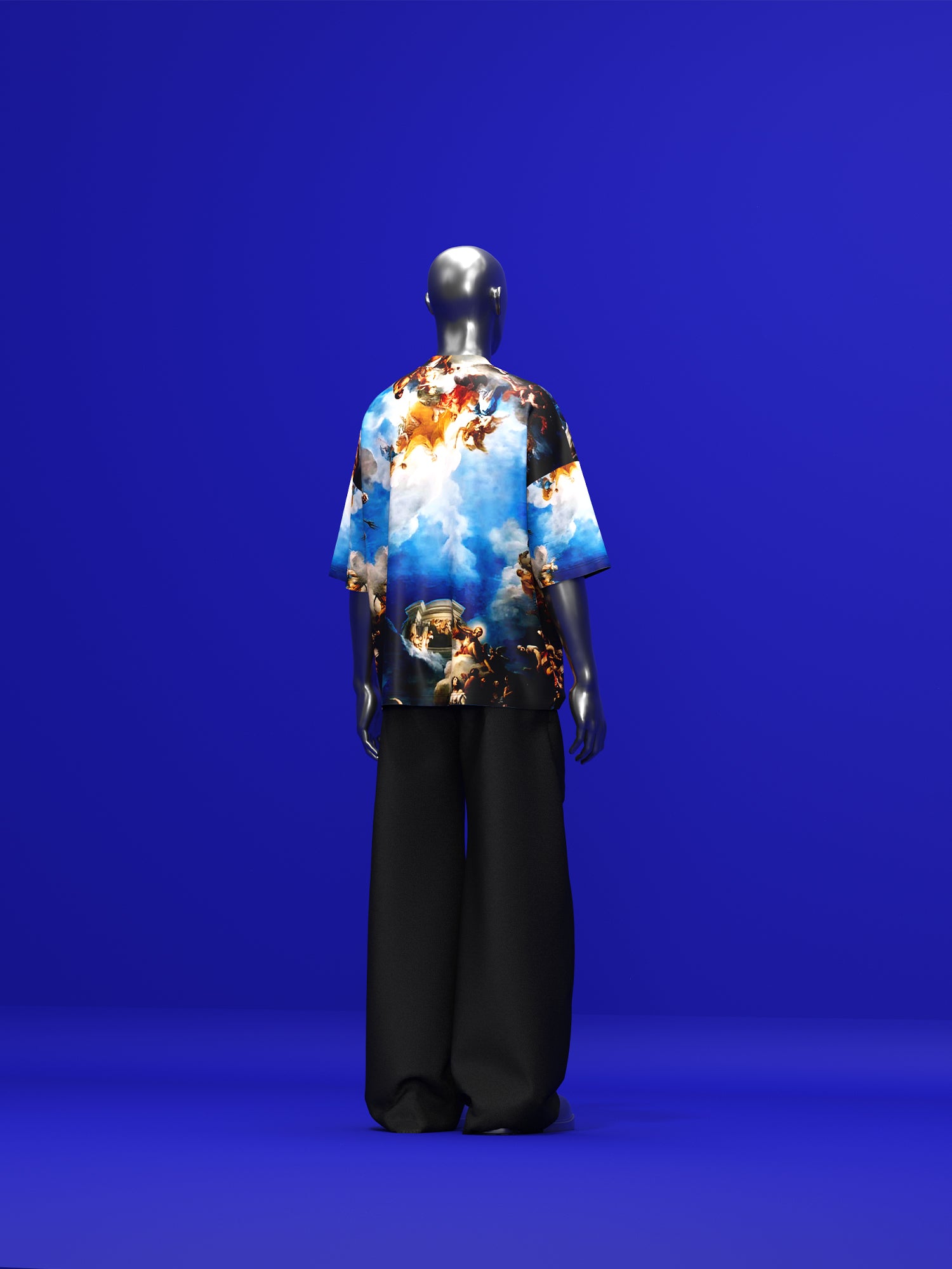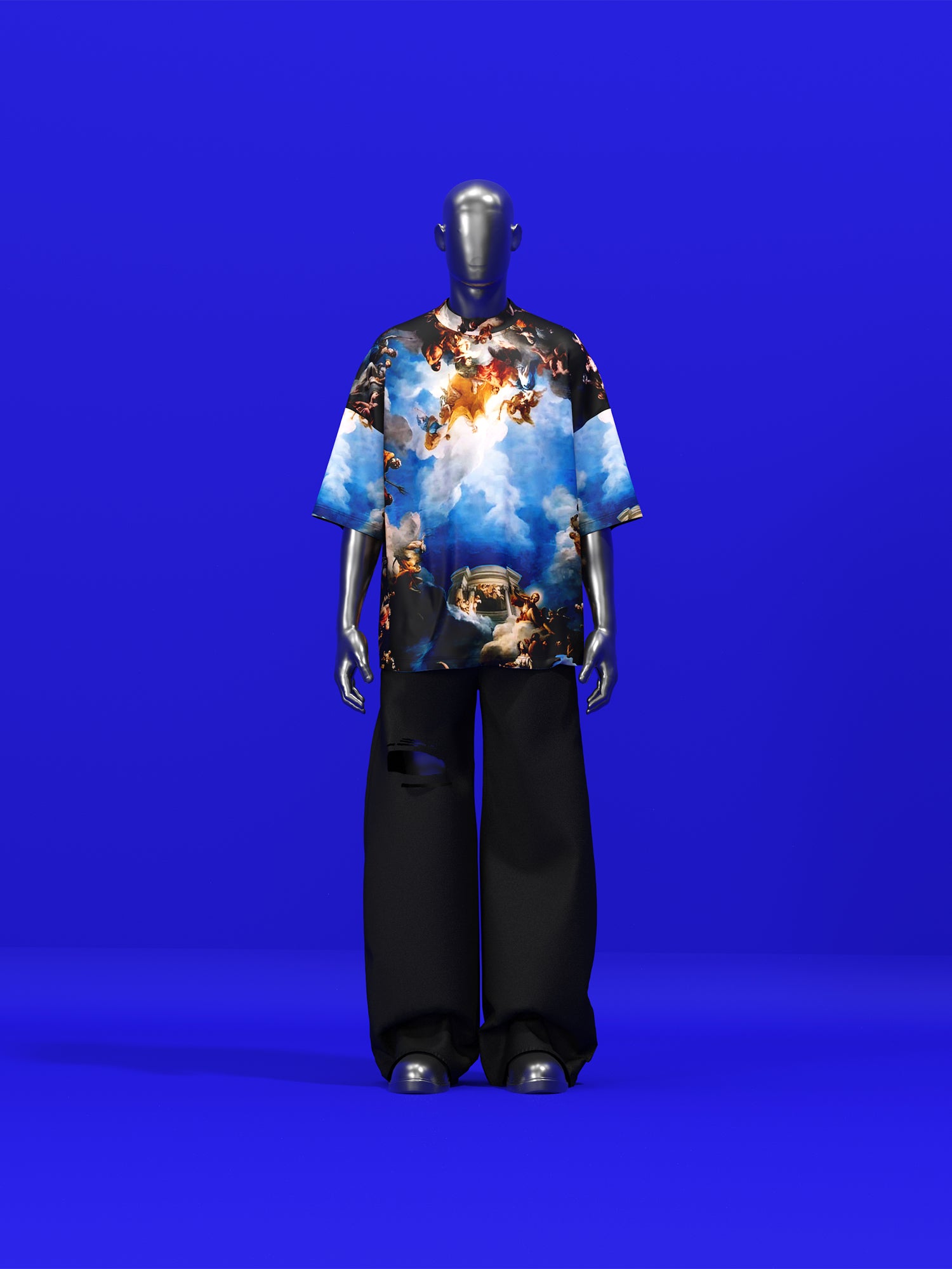 Step into the skies with the Blue Heaven Tee. Featuring a surreal baroque-inspired artwork of heavenly clouds and divine figures, this piece captures the beauty of paradise in wearable art. Perfect for those who like to stand out with a mix of elegance and boldness.