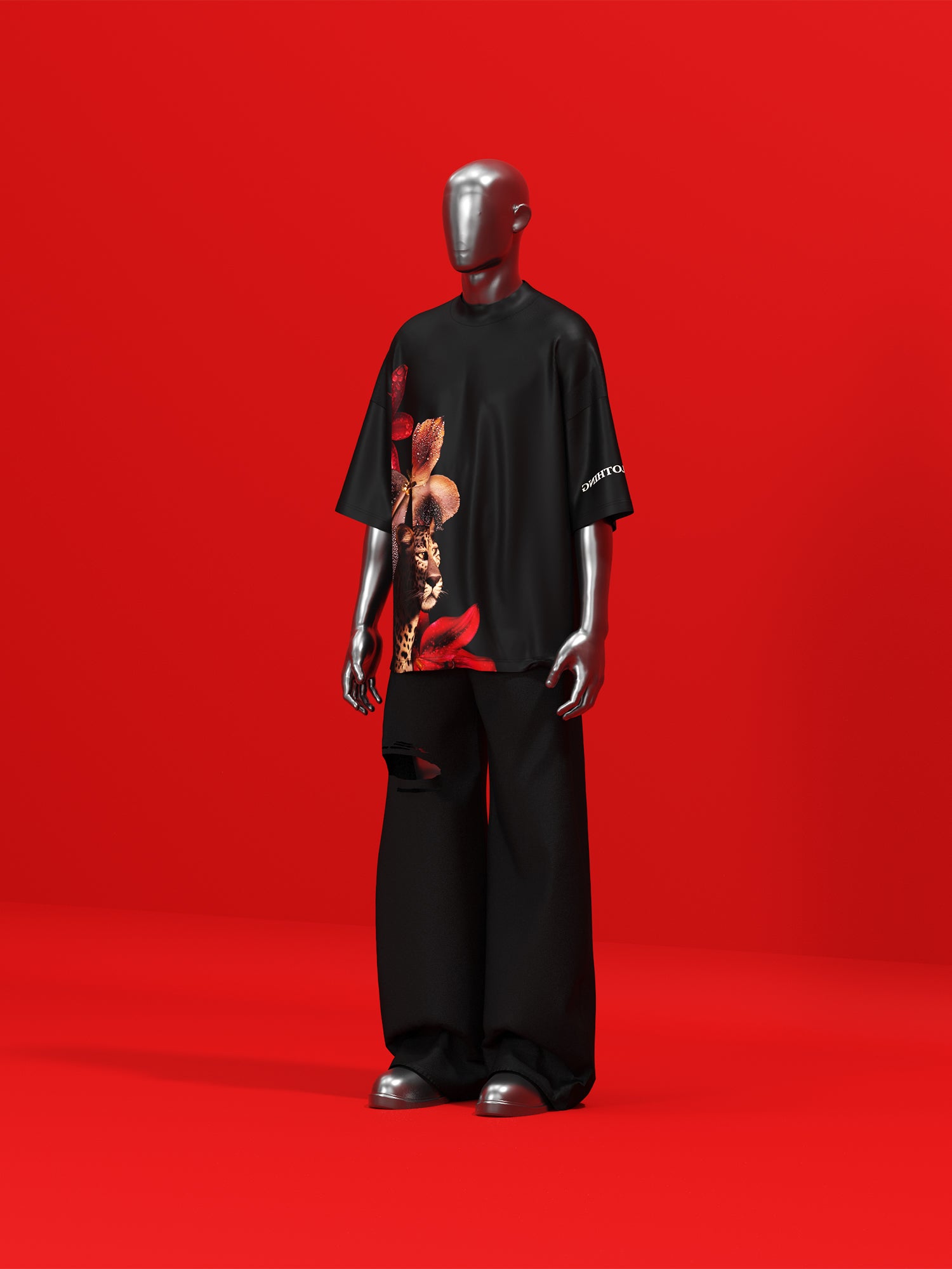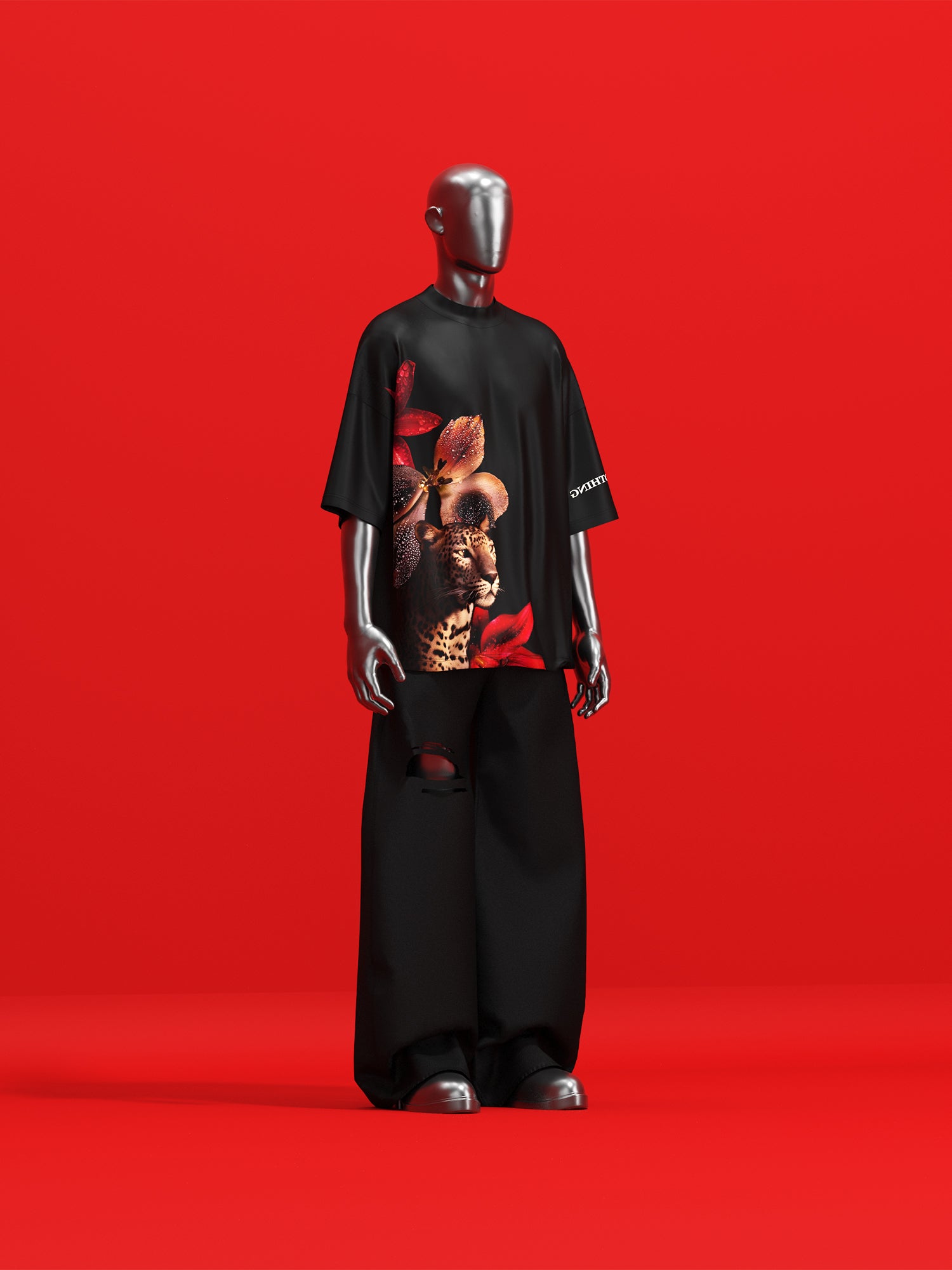 "Where fire meets finesse — ‘Predator Bloom’ showcases the elegance of a leopard crowned by fierce florals. It’s not just a fit, it’s a force.